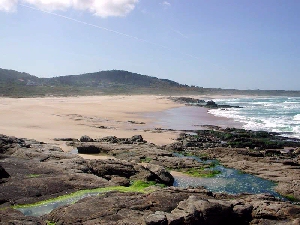 Praia do Rostro en Fisterra: Es una playa bonita, pero ventosa y peligrosa (hay carteles advirtiéndolo), pero tiene una tranquila zona entre dunas en las que buscar un lugar agradable. Los accesos son buenos, el ambiente tranquilo, la arena fina, pero es aconsejable no bañarse muy adentro (por si acaso).