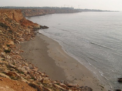 Las calas que comento pertenecen al municipio de Orihuela, solo que hacen frontera con Torrevieja y distan mas de 30 km. de Orihuela; por eso siempre ha habido un poco de guasa cuando los oriolanos dicen que Orihuela tambien tiene playas. Bueno, cosas de vecinos. El caso es que al salir de Torrevieja en dirección a Cartagena atraviesas una urbanización que se llama «Playa Flamenca», ésta queda a lado y lado de la carretera N-332. A la izquierda de esta urbanización se encuentran dos playitas mas o menos pequeñas y junto a estas, entre la urbanización y Torrevieja, están las tres calas, donde los nudistas convivimos perfectamente con los textiles, ya que nos bañamos desnudos en ellas desde que eran territorio de nadie, en la época de Franco. Se encuentran frente a un centro comercial que creo que se llama «La Mosca» y un local de «El corte inglés», un Supercor.