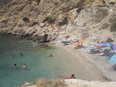 Y te recomendaría, que fueses también a Jávea, que no está muy lejos de Benidorm, hacia el norte se llama la Playa del Ambolo, es muy bonita con aguas transparentes, también es de roca.