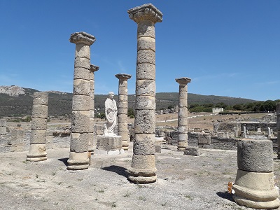AURELIO: Baelo Claudia, la factoría de *garum*, ambrosía para Roma. Con suerte verás delfines saltando a la caza de los atunes que cruzan el estrecho. Bajo las aguas hay praderas de algas y pecios de buques hundidos, antes cargados de cañones y oro, hoy de morenas y hurtas.