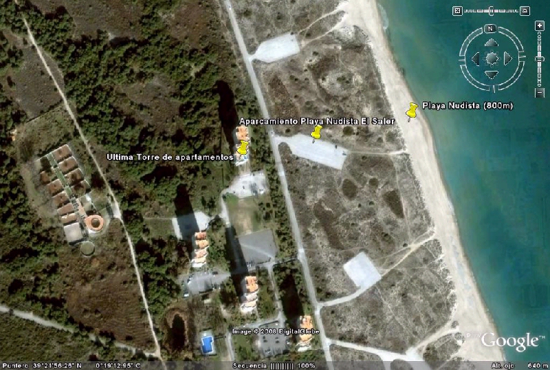 Hoy he ido a conocer la playa nudista «oficial» de Valencia (lo pongo así, con comillas, porque no sé si lo es o no). Digo «oficial» porque de la lectura de esta página saqué la conclusión de que el propio Ayuntamiento de Valencia la había reconocido como tal, y la había rotulado. De hecho, hay una foto en la página donde se vé el cartel, pero lamentablemente ese cartel de «Playa nudista» ya no existe hoy día. Sin embargo, una vez allí pregunté y me dijeron que esa zona era nudista «desde siempre», y efectivamente pude comprobar que había muchas personas desnudas disfrutando del sol y del mar. Lo malo es que a ambos lados de esa zona (que no está acotada ni señalizada), hay playas textiles, y por tanto, a ambos lados se mezcla la gente vestida y la desnuda, y a mí es algo que personalmente no me gusta. La zona central no tiene gente con bañador. El camino para llegar es, como se dice en esta página, desde Valencia hasta el Hotel Sidi Saler, y una vez enfrente de la puerta del hotel, coger una carreterita interior (más cercana al mar que la carretera por donde hemos llegado desde Valencia), y marchar en sentido inverso, como si volviéramos a la ciudad pero por esa carretera (es como hay que hacerlo, aunque suene raro). Pasaremos, pues, por delante de las torres de apartamentos del Saler. Al llegar a la última torre (que está en el núcleo 5), aún tenemos que seguir más con el coche hasta la última zona de aparcamiento, que no tiene edificios. Allí es. La playa no es gran cosa, la verdad, y tiene algo de piedras al entrar en el agua; pero no está mal.